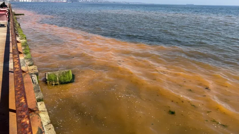 Marmara Denizi’nin Tekirdağ sahili kıyılarında alg patlaması meydana geldi, bazı kesimlerde deniz turuncu renge büründü.